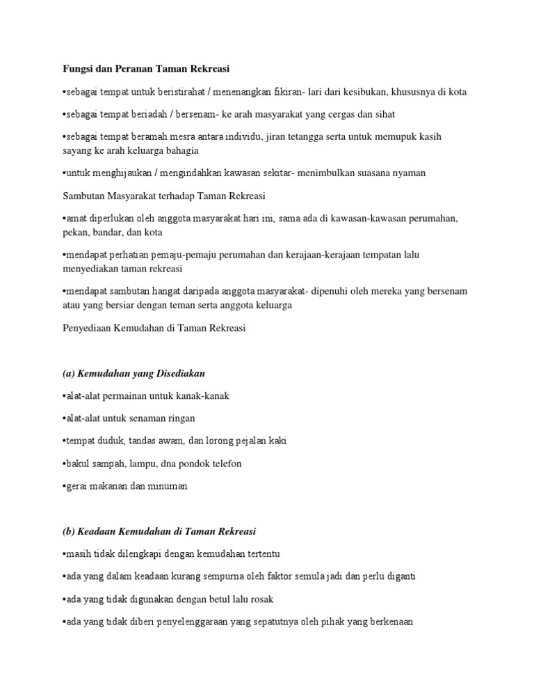 Fungsi Dan Peranan Taman Rekreasi Pdf